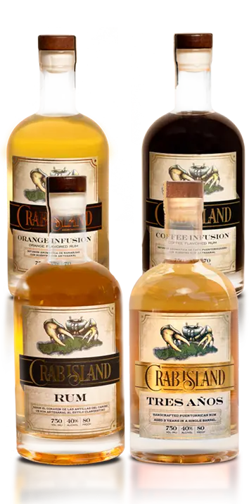 Our Crab Island Rum Añejo is a distillate made from sugar cane molasses and aged for a minimum of 14 months.